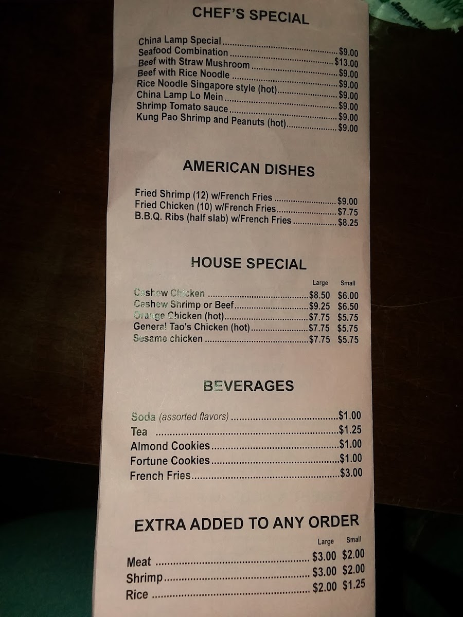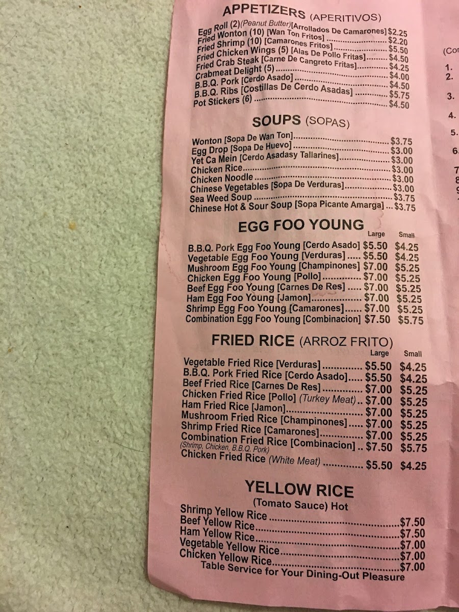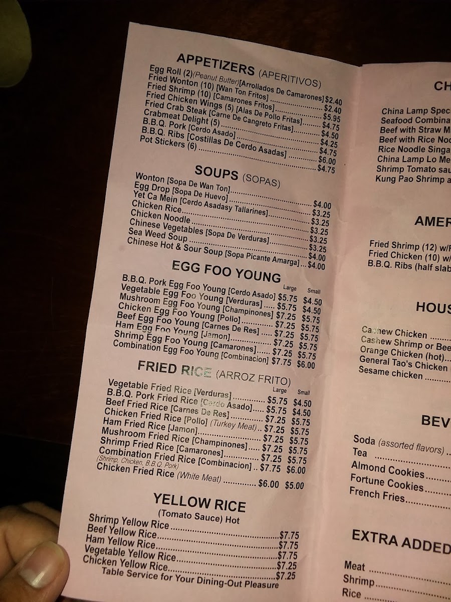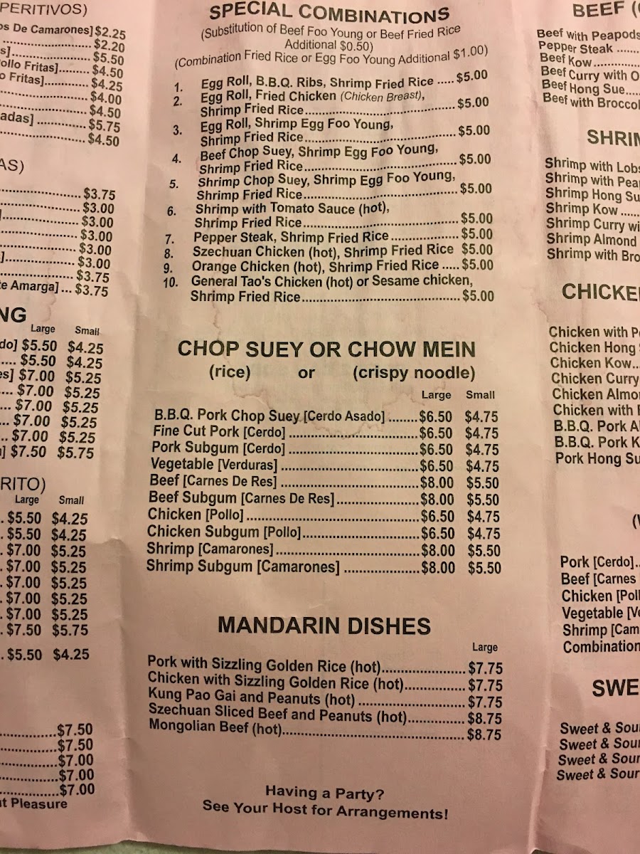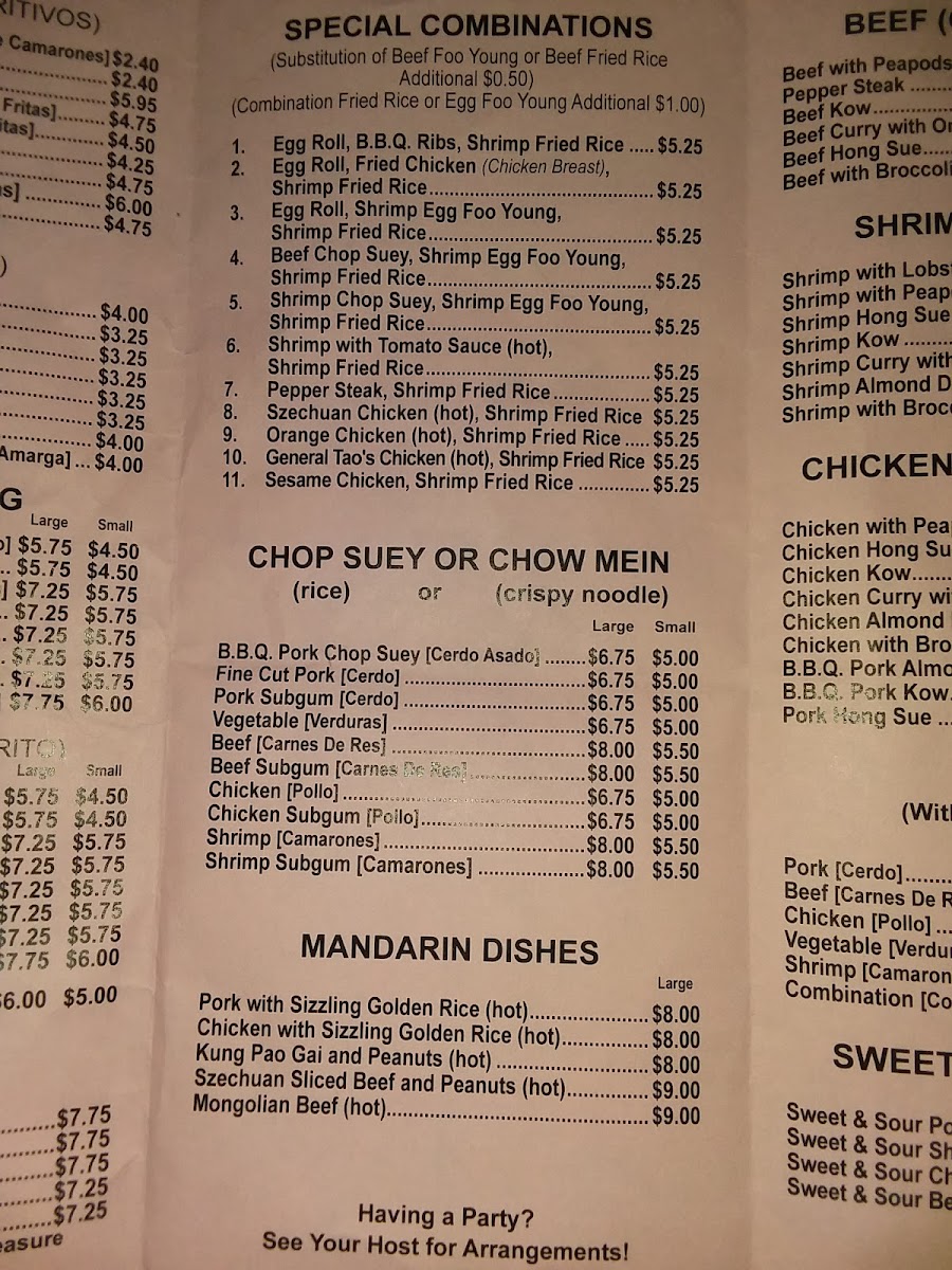 Beef Chop Suey, Shrimp Egg Foo Young, Shrimp Fried Rice